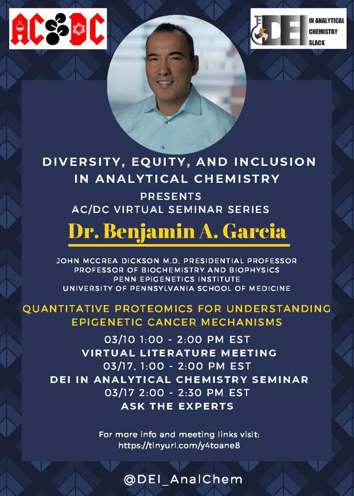 We are excited for our upcoming AC/DC Seminar scheduled for Wednesday March 17th at 1:00-2:00 PM EST with Dr. Ben Garcia from the University of Pennsylvania ! Click here to learn more about the AC/DC seminar series and to sign up for the listserv to receive meeting links.